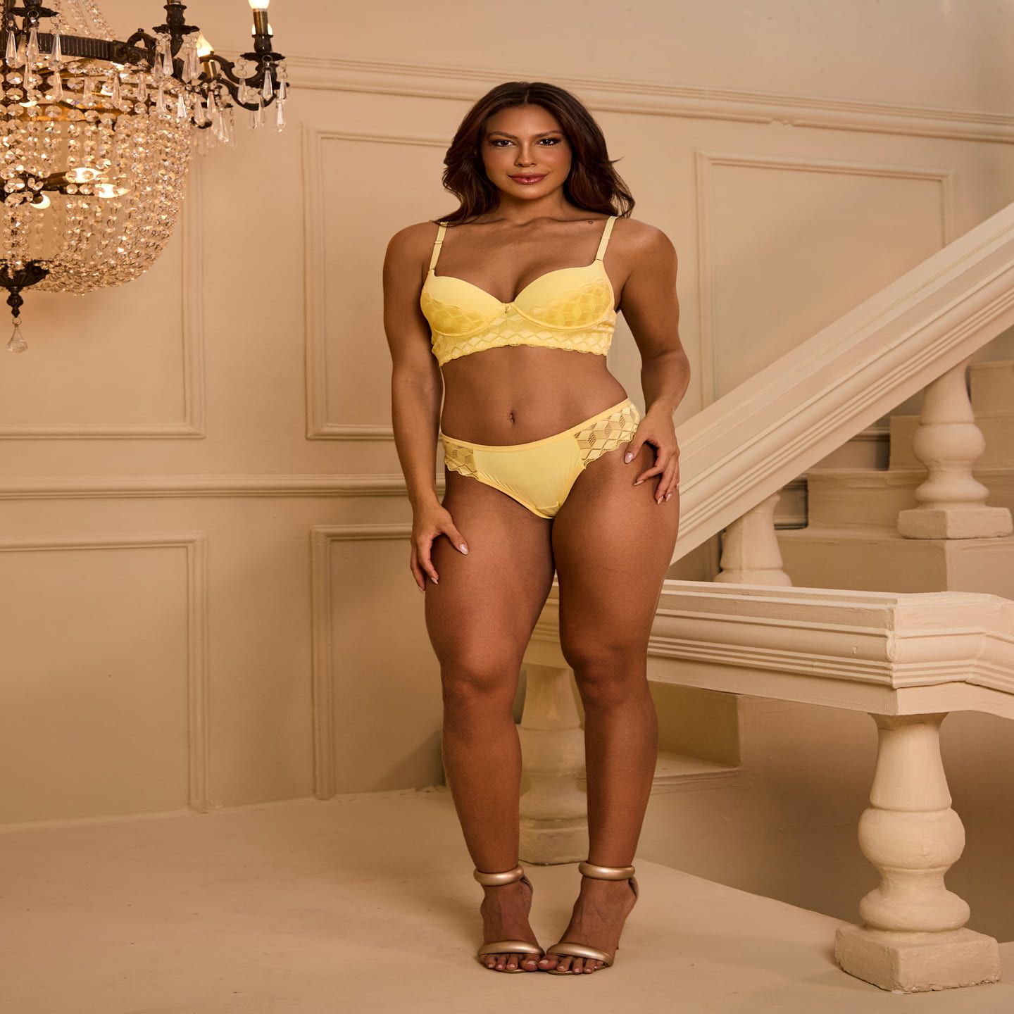 Desperte sua sensualidade com nossa coleção, uma fusão perfeita entre elegância e ousadia. Este conjunto, composto por um sutiã e uma calcinha, é a expressão máxima de qualidade e sensualidade, projetado para realçar sua beleza única.